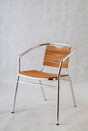 This classy patio chair is the best way to spice up your patio area. The very sophisticated look is because the sleek slats in the back and seat and the aluminum arms and legs. While stylish, the aluminum offers the functionality of being sturdy and reliable. The slats are ideal for a patio chair in order to allow air flow through, keeping you cool and comfortable. The rubber tips on the legs enable the chair to glide smoothly across any surface. Set of four. Assembly level/degree of difficulty: Easy.