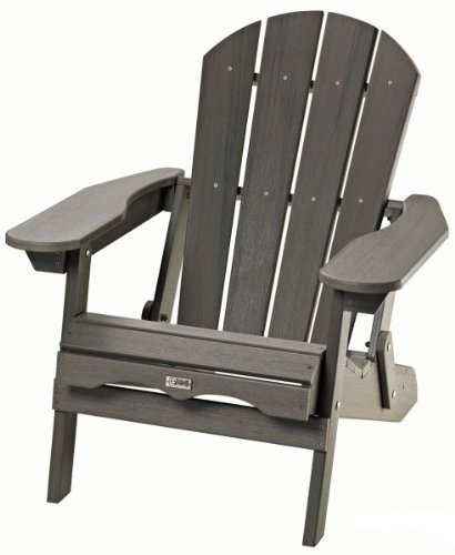 The Grey Eon Folding Adirondack Chair is an easy way to relax in your own backyard and a great piece of outdoor furniture. This weather resistant patio furniture won't fade. Folds for easy storage. Natural wood like appearance. Durable construction. No painting required. Made of resin polystyrene. Assembly level/degree of difficulty: Easy.