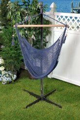 Sit back and stretch out. This Rope hammock chair has it all. The comfort of hand woven cotton rope, with enough slack to stretch your legs out and recline to your most desirable lounging position. It installs in minutes with only 1 overhead hanging point. Beautifully decorated with tassels and braided rope with a variety of colors to choose from.