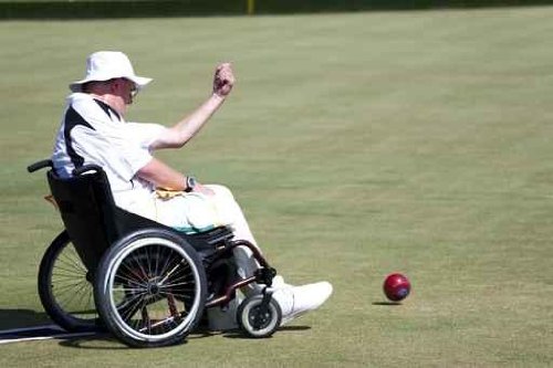 Wheel Chair Lawn Bowls for Disabled Persons (men) - 24"W x 16"H - Peel and Stick Wall Decal by Wallmonkeys Feature